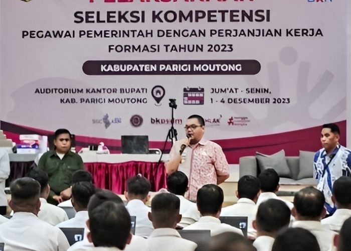 Kalammedia.net – Pj. Bupati Parigi Moutong, Richard Arnaldo, SE, M.S.A meninjau langsung proses seleksi Pegawai Pemerintah dengan Perjanjian Kerja (PPPK) tingkat Kabupaten Parigi Moutong di auditorium Kantor Bupati, jumat (01/12) 2023.