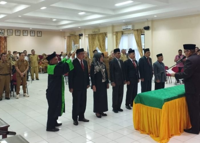 Pelantikan atau pengaktifan kembali 6 Pejabat Pimpinan Tinggi Pratama itu, dilaksanakan di Aula Lantai II Kantor Bupati, Senin, 22 Januari 2024.