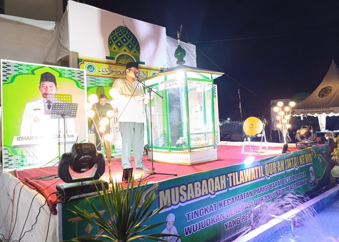 Kalammedia.net, PARIGI – Musabaqah Tilawatil Qur’an (MTQ) ke-8 Tingkat Kecamatan Parigi Barat tahun 2024 di Baliara resmi dibuka oleh Penjabat Bupati Richard Arnaldo Djanggola, S.E, M.S.A. MTQ tersebut diharapkan dapat menghasilkan para juara yang mampu mewakili dan membawa nama harum Kecamatan Parigi Barat, Selasa, (19/08/2024).