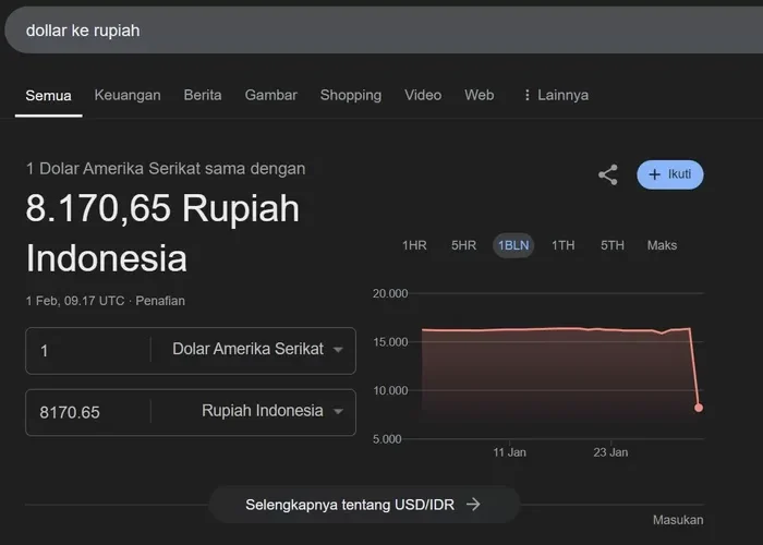 Kalammedia.net – Kabar mengejutkan datang dari dunia maya dalam beberapa jam terakhir setelah muncul informasi yang menunjukkan nilai tukar 1 dolar AS hanya Rp8.170,65.