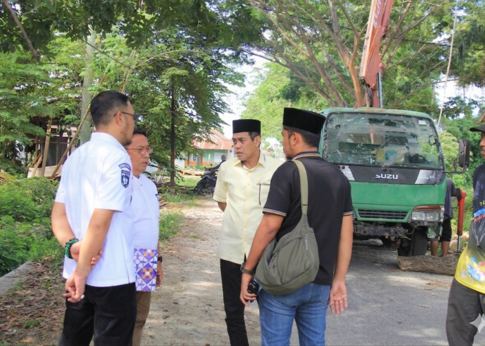 Bupati meninjau proses penebangan pohon yang dinilai sudah tua dan berpotensi membahayakan keselamatan masyarakat. Kegiatan tersebut turut didampingi Sekretaris Daerah (Sekda) Zulfinasran serta Kepala Dinas Lingkungan Hidup Siti Maryam.