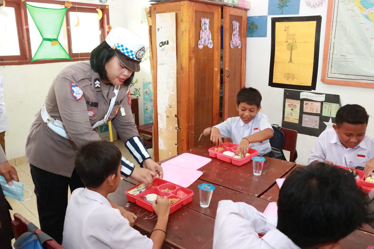 Siswa SDN Inti Pangi Terima Makanan Bergizi dari Polres Parigi Moutong.